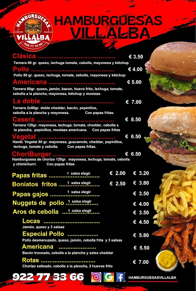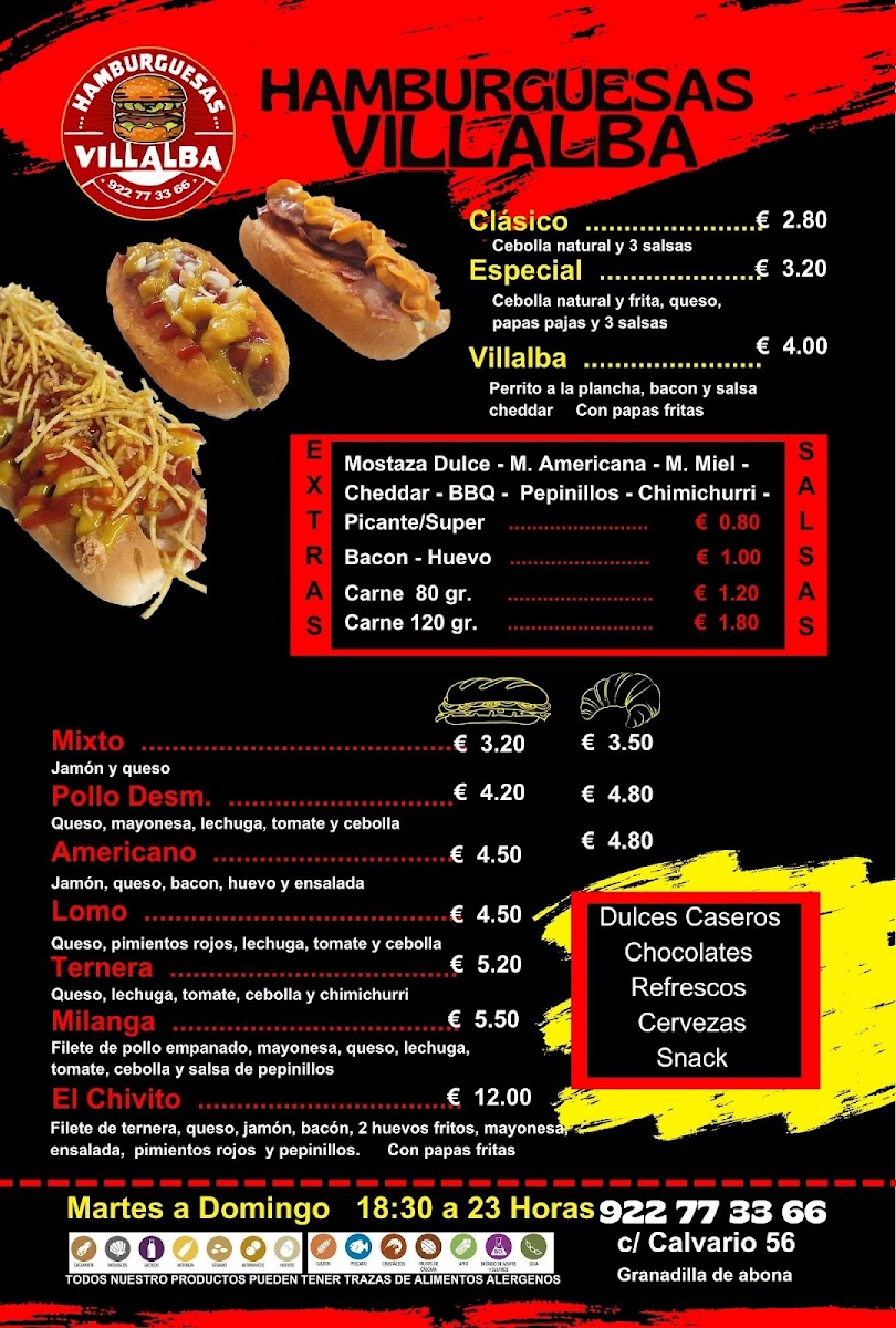 Welcome to Hamburguesas Villalba, a hidden gem located at C. el Calvario, 56 in Granadilla, Santa Cruz de Tenerife. This vibrant eatery prides itself on delivering delicious, hearty meals that evoke a sense of nostalgia. The menu features a variety of classic hamburgers, enticing chicken options, and a beloved hot dog that brings back fond memories.